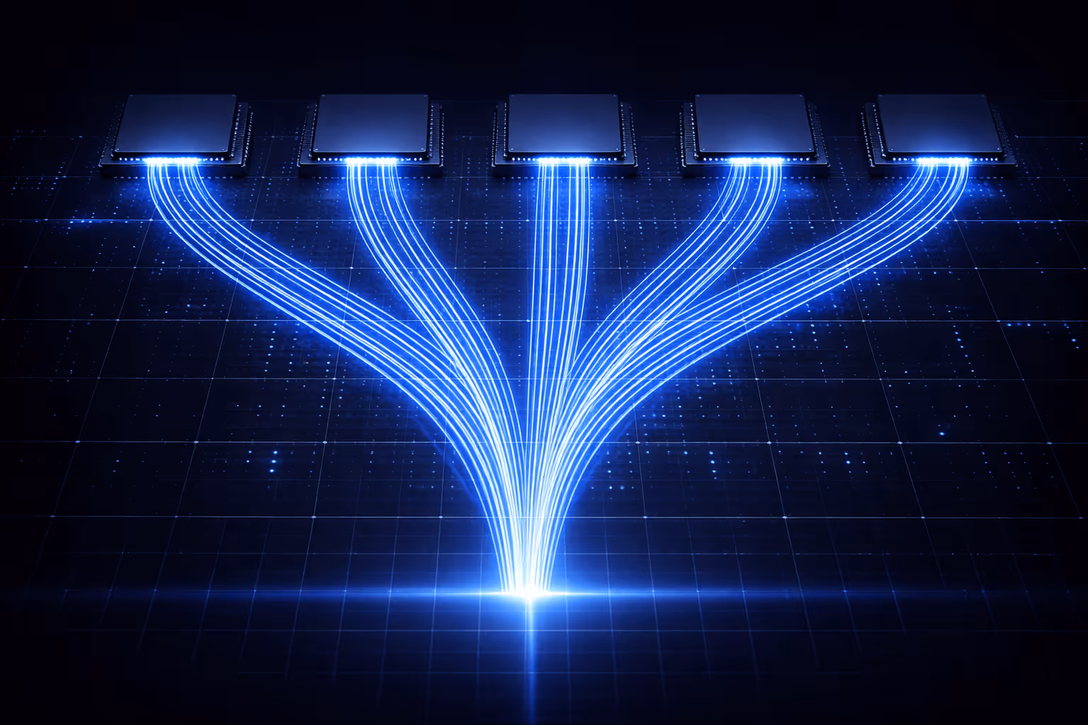 The core of Lumai’s unique AI processor is an Optical Matrix Multiplier. We use the properties of beams of light moving in 3D space to perform the calculations. By using very wide vectors and high optical clock speeds, data is processed at least 50x faster and 90% more efficiently than today’s solutions.